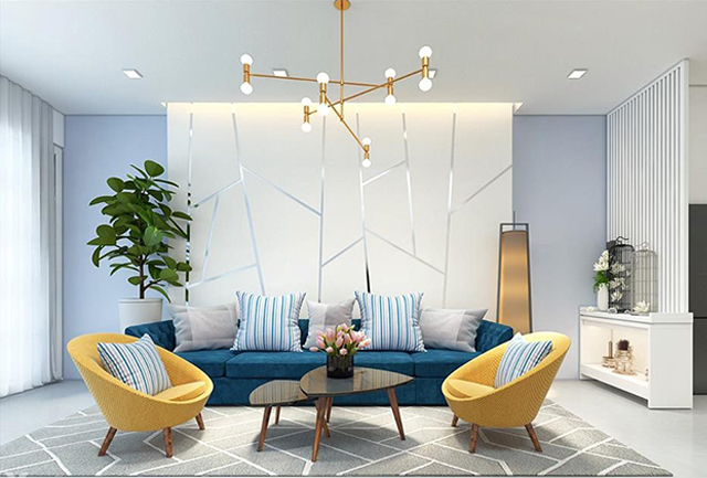Màu xanh navy và màu vàng nắng kết hợp mang đến bầu không khí hiện đại và tươi mới