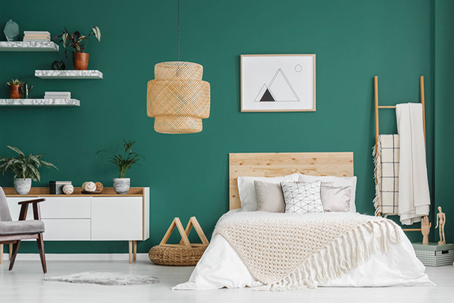Màu xanh lá biểu thị cho sự sinh trưởng. Sử dụng màu xanh lá cho phòng ngủ mang đến cảm giác gần gũi, tươi vui