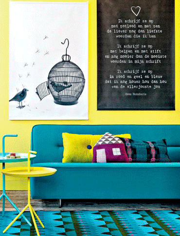 Đây là gam màu mang sự tích cực, tràn đầy năng lượng phối hợp một cách vui vẻ với những sắc màu tươi sáng khác, màu vàng chanh có thể đóng vai trò màu chủ đạo của căn phòng và có tác dụng như một màu nhấn, làm tăng phần hấp dẫn cho các màu sắc khác.